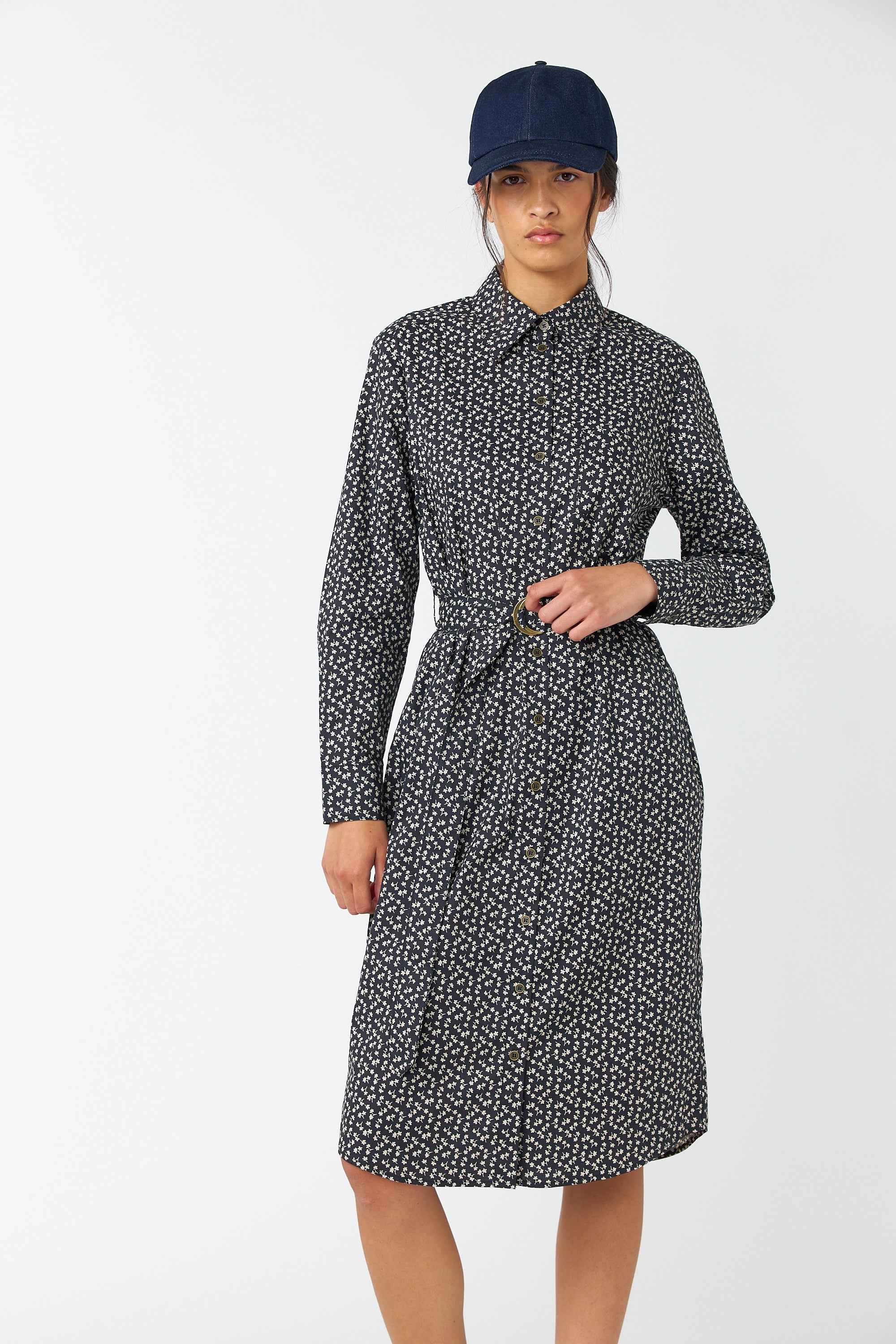 Our Dimity shirt dress buttons through to just below the knee. It features a classic fold down collar and a d-ring belt to cinch in the waist. The full length cuffed sleeves look great rolled back to elbow. Complete the look with our .Nevaeh is 5'8 and wears size 8.