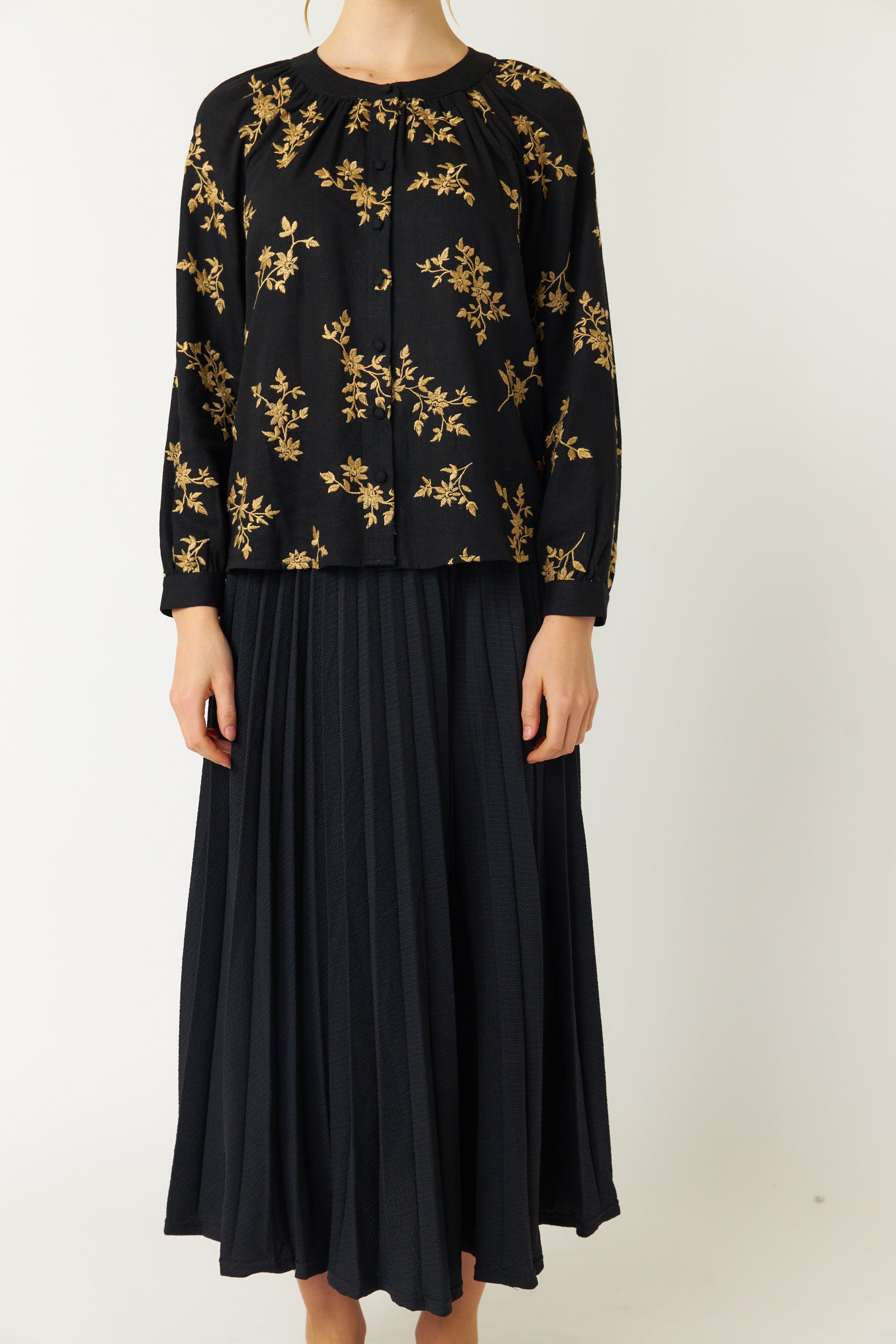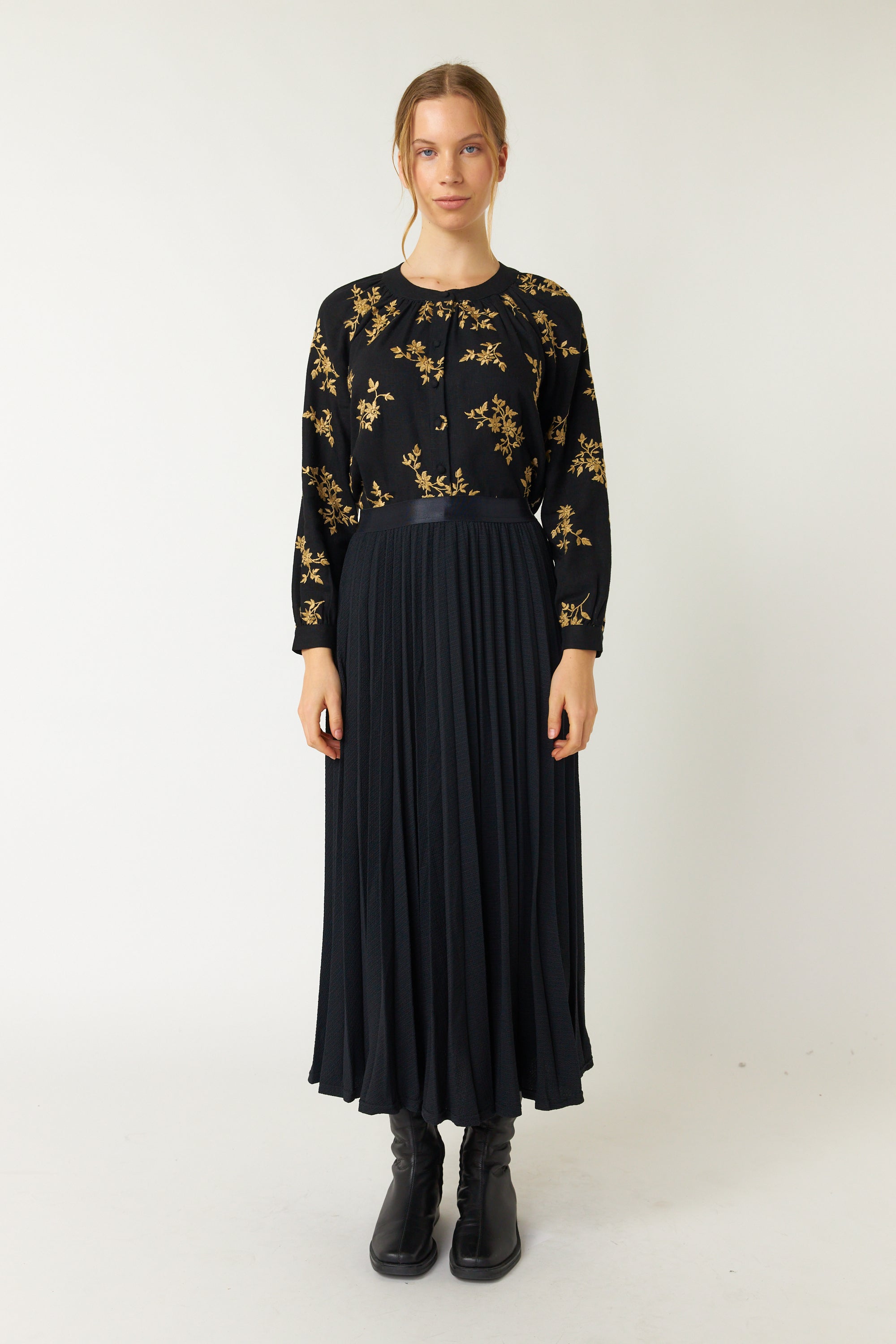 Our incredibly useful pleated Ripple skirt can be worn with anything and go anywhere. The flattering pleats fall to low calf and features an elasticated waist. We've styled it here with our and .Mia is 5'10 and wears size 8.